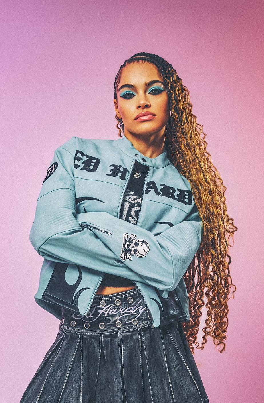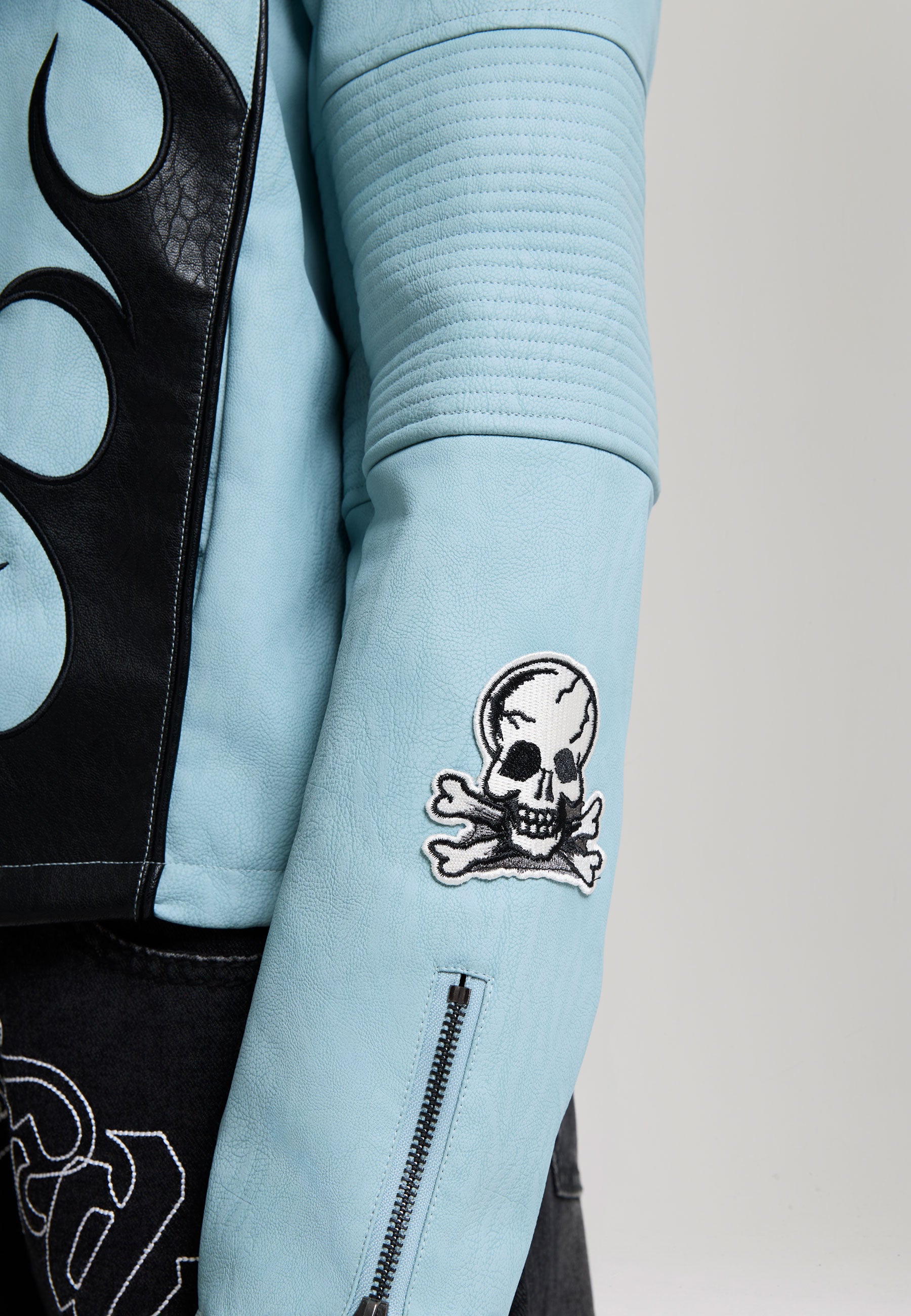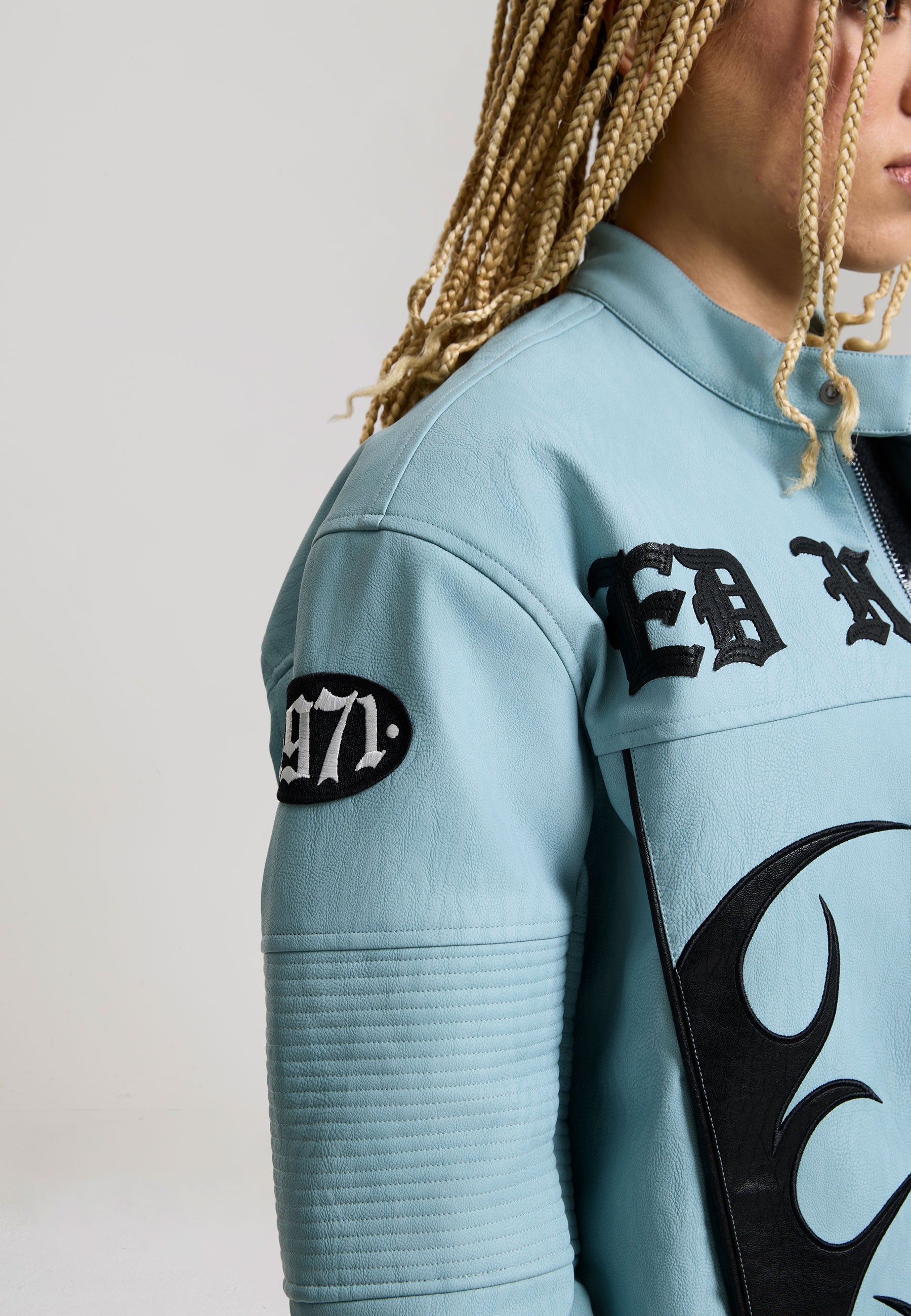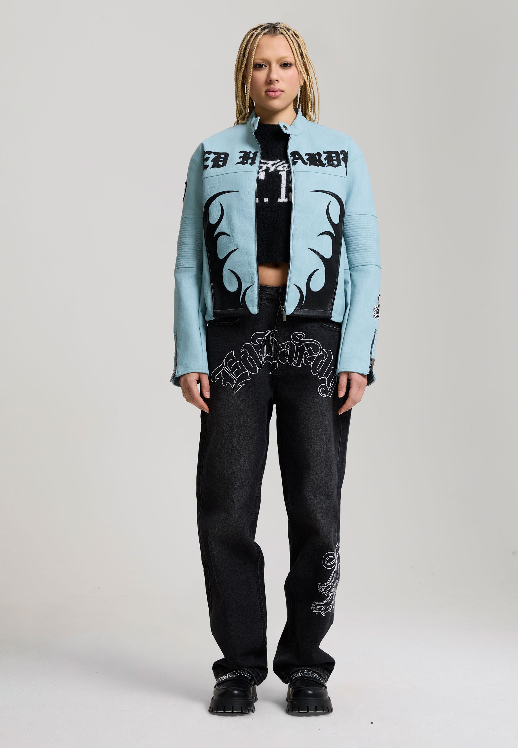 Womens Ed Hardy Gothic Flames Oversized Biker Jacket - Blue