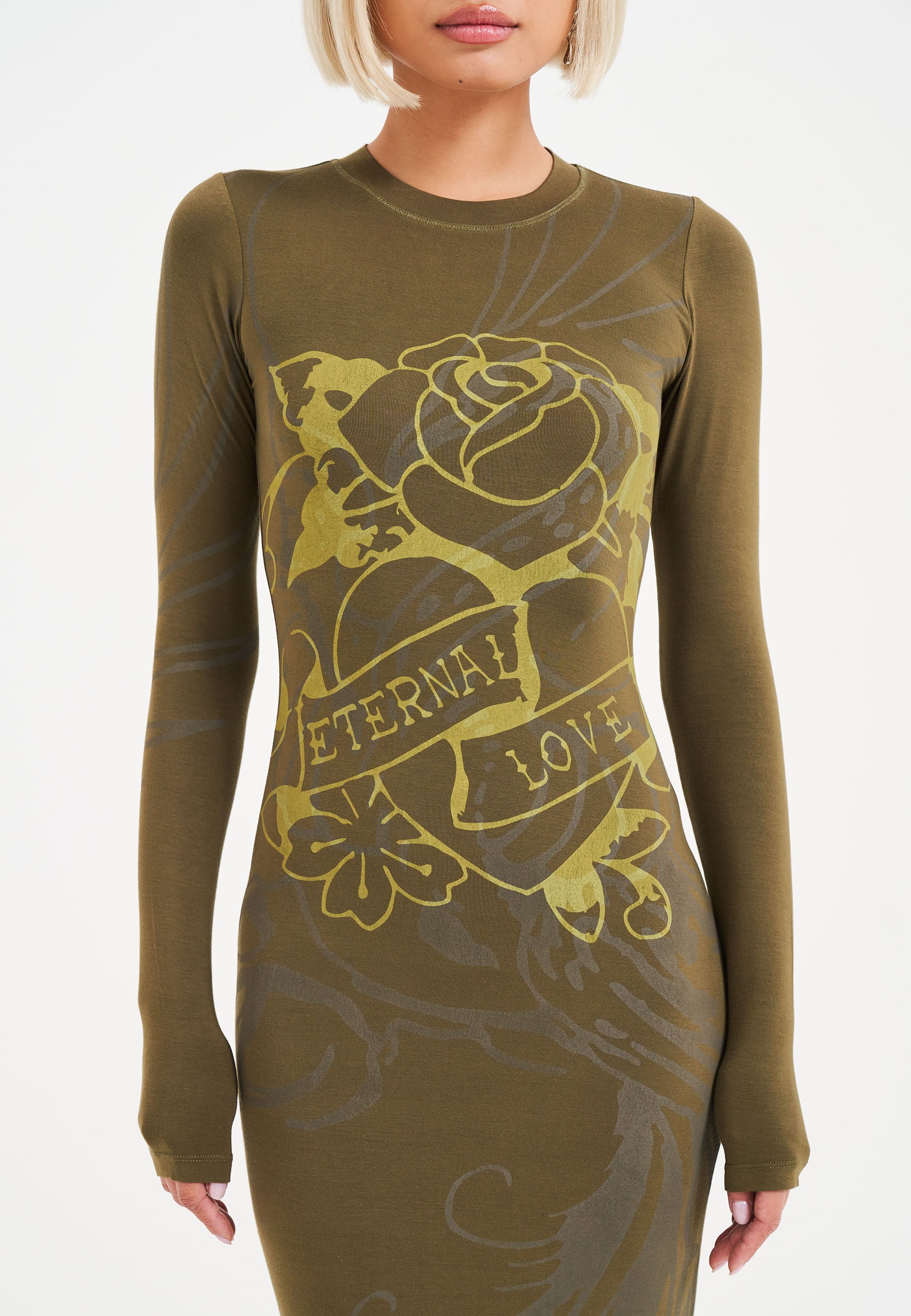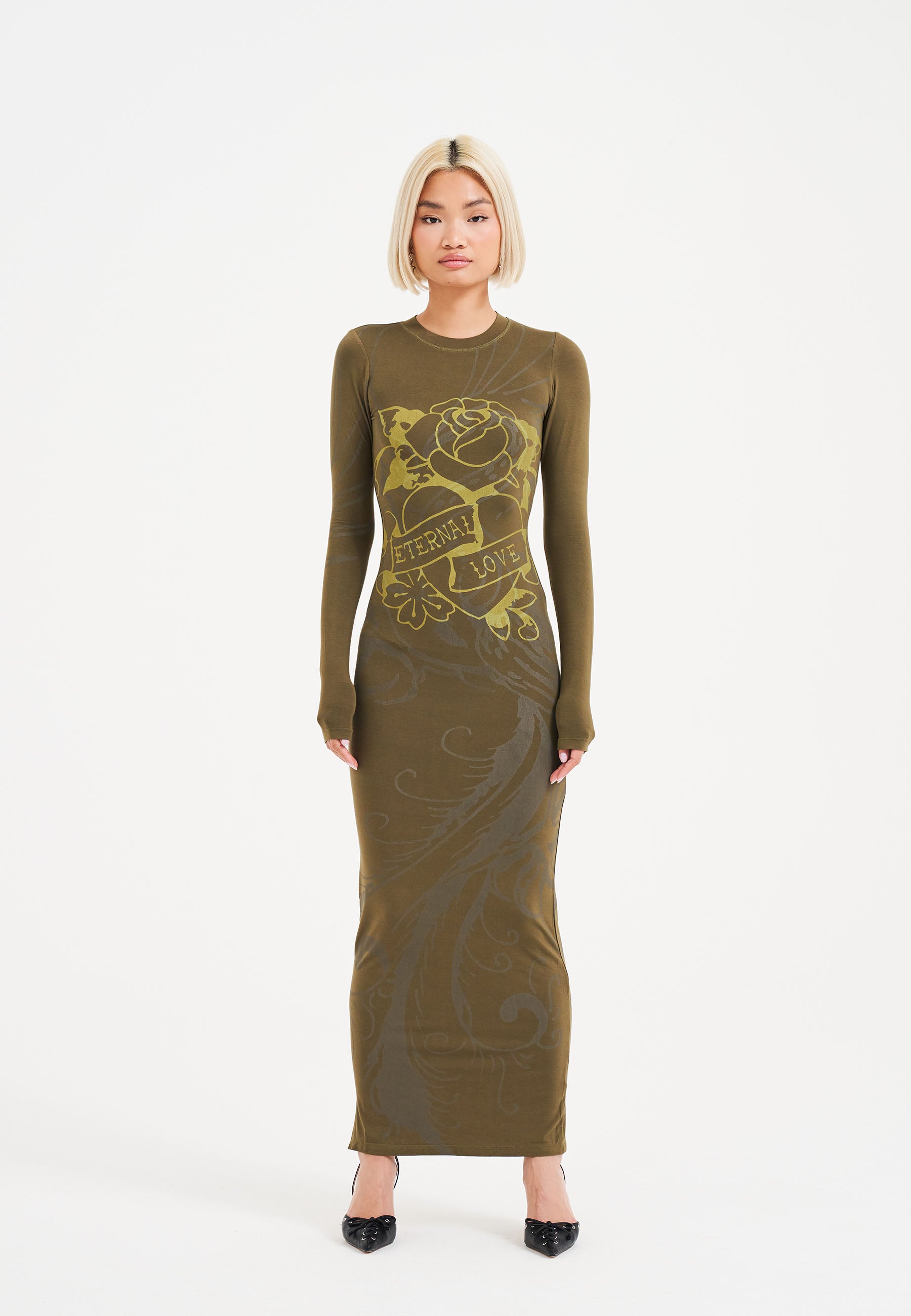Womens Eternal Love Long Maxi Dress - Olive Night