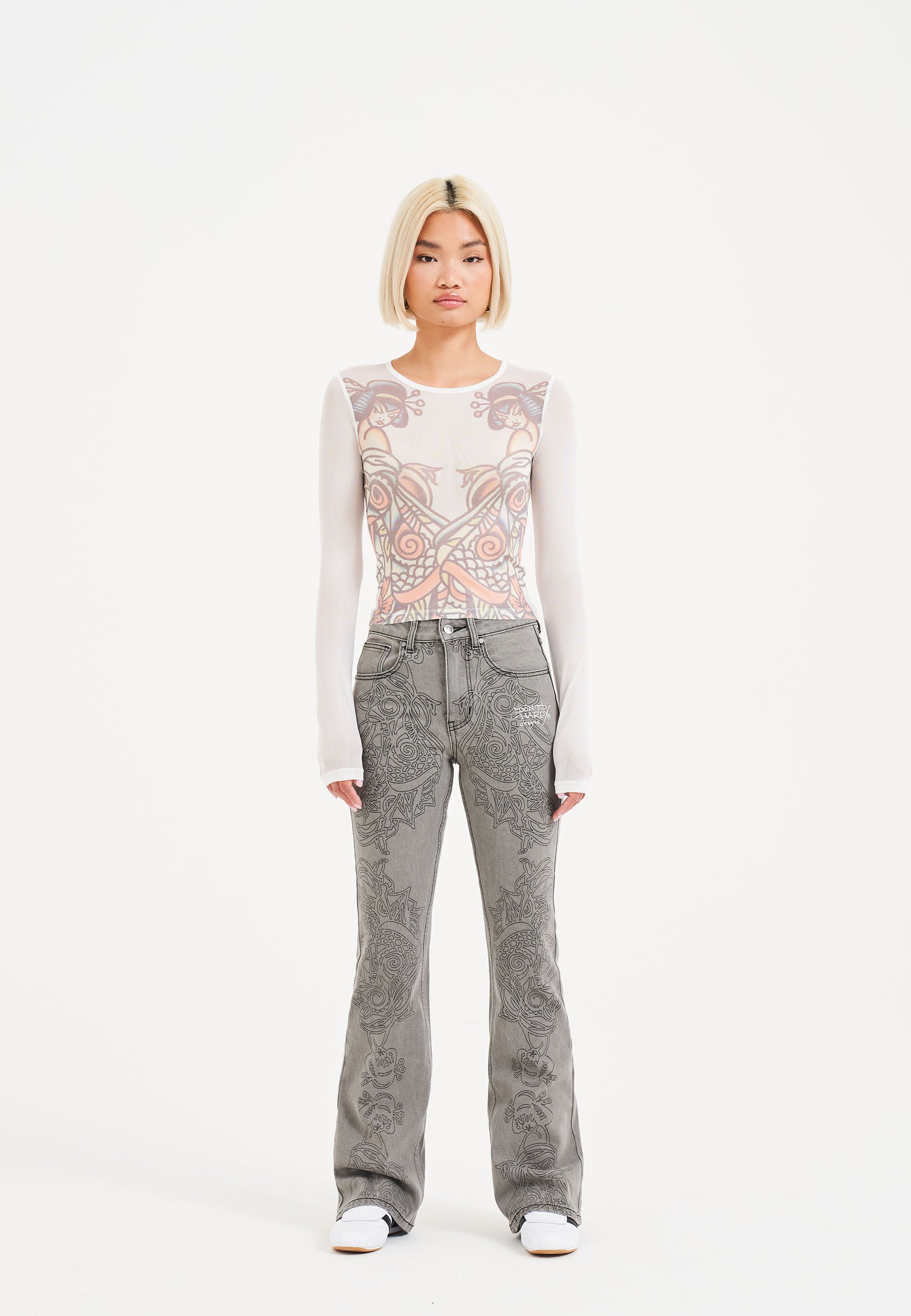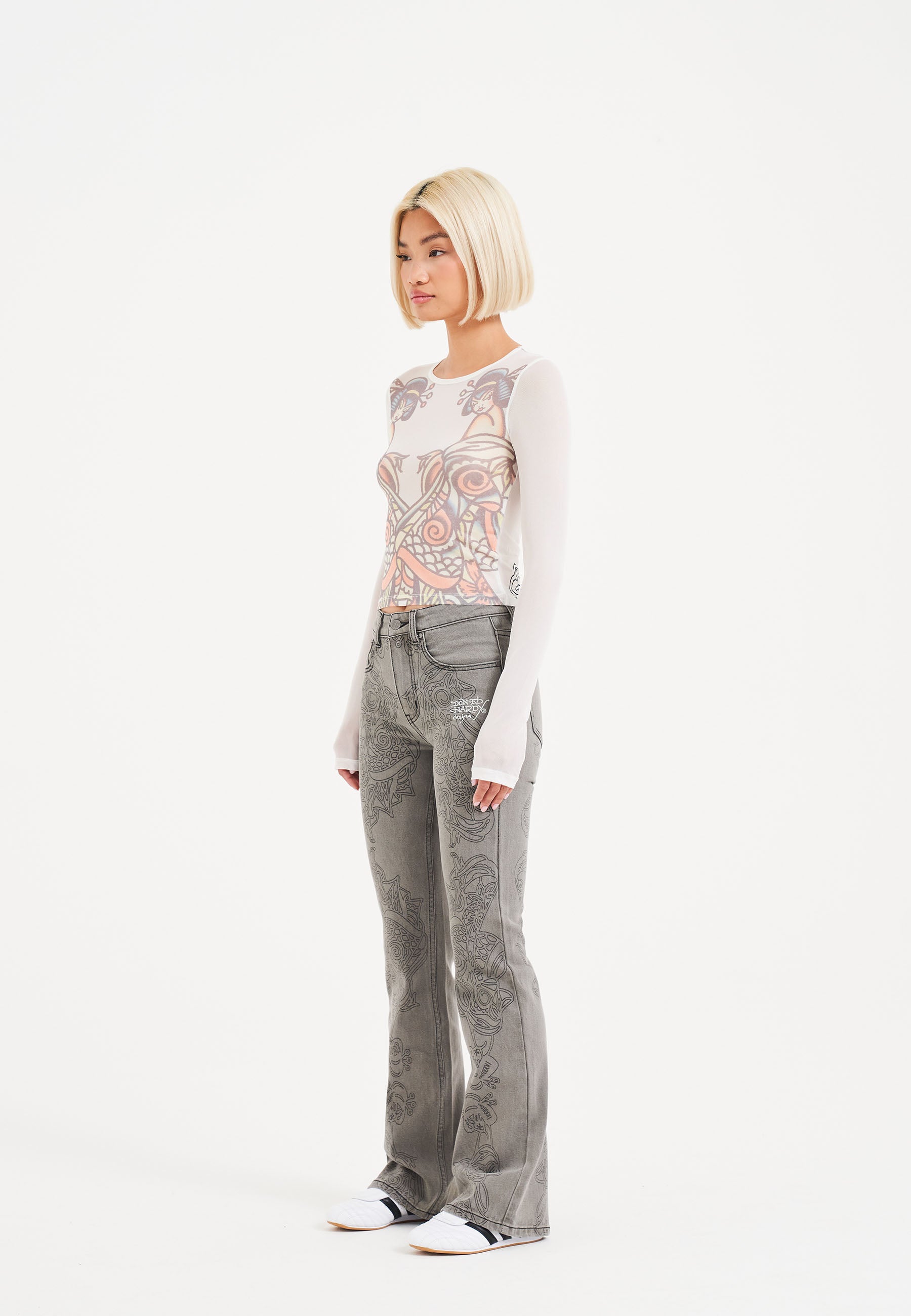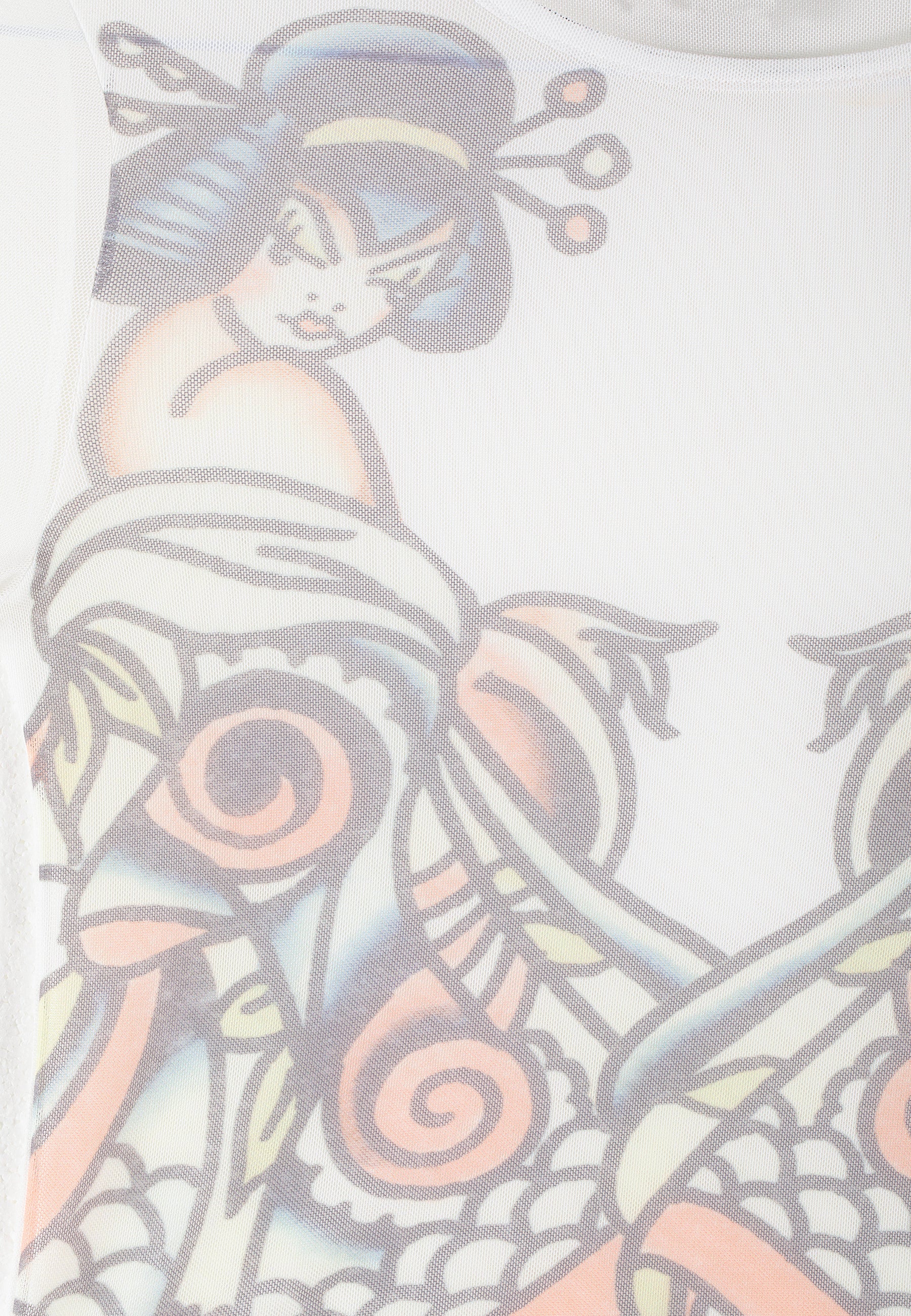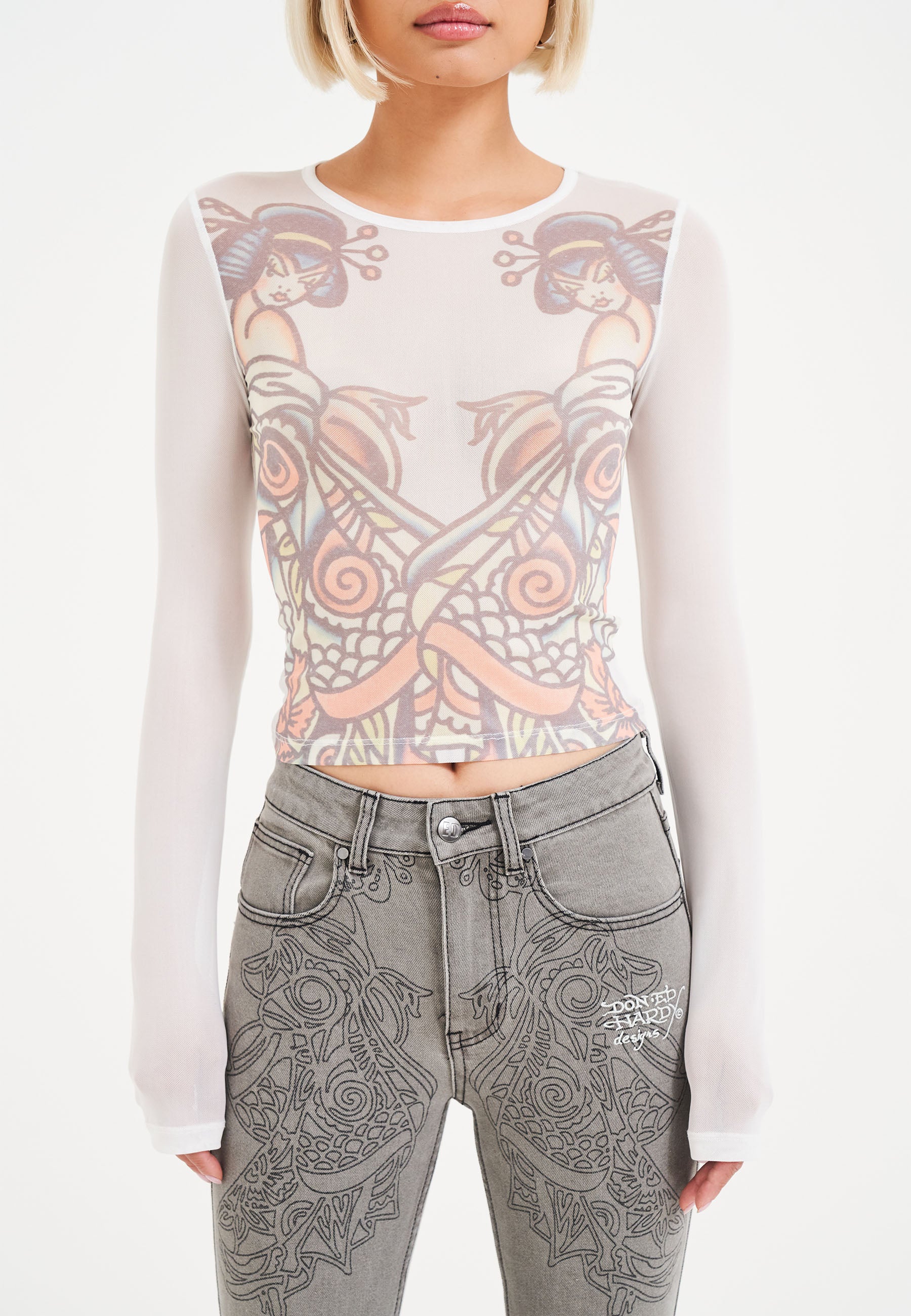 Womens Ice Geisha Mesh Long Sleeve Tshirt Top - White