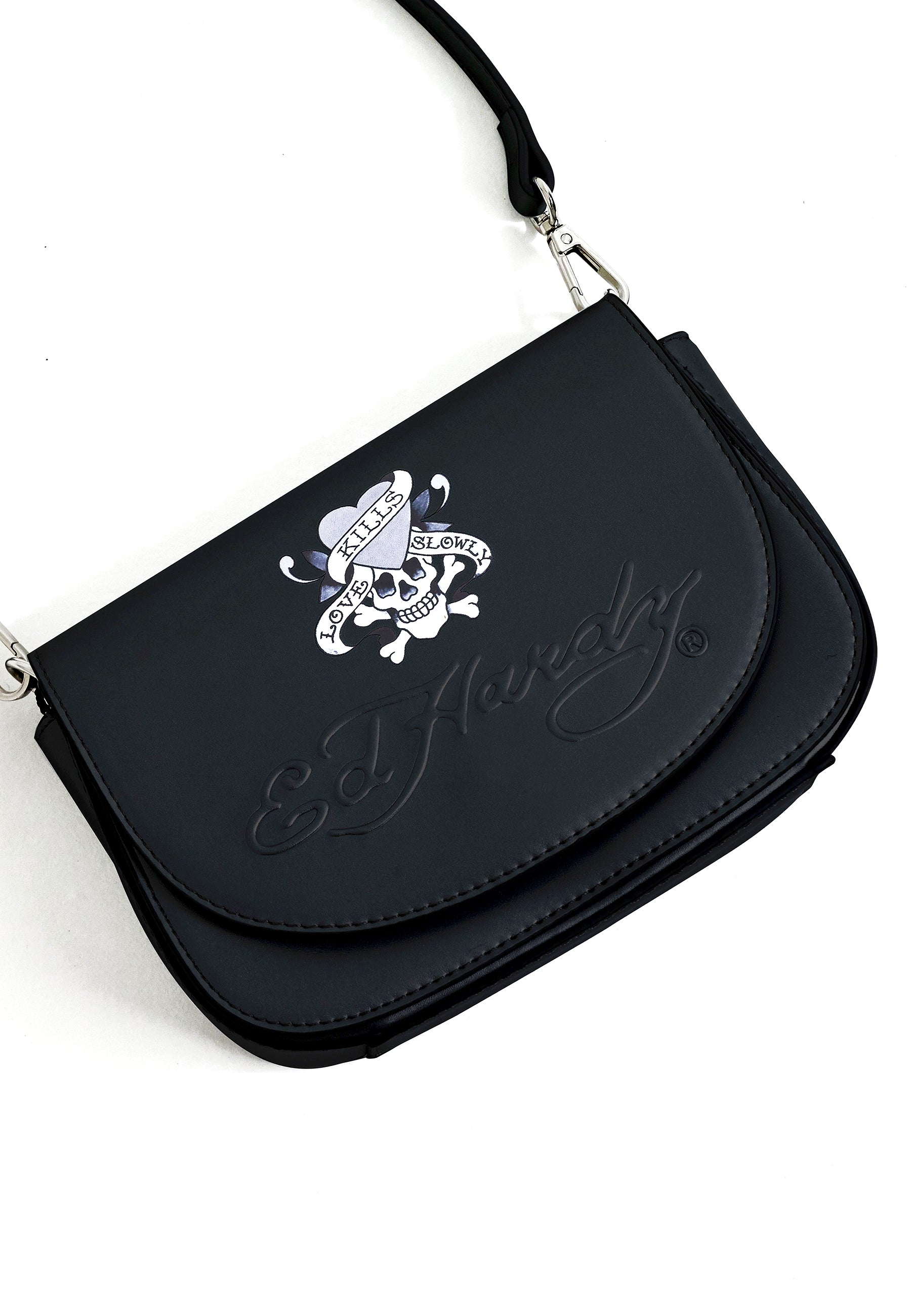Featuring Ed's signature logo embossed on the front and a tonal Love Kills emblem, this bag embodies the art and culture that define the Ed Hardy aesthetic.