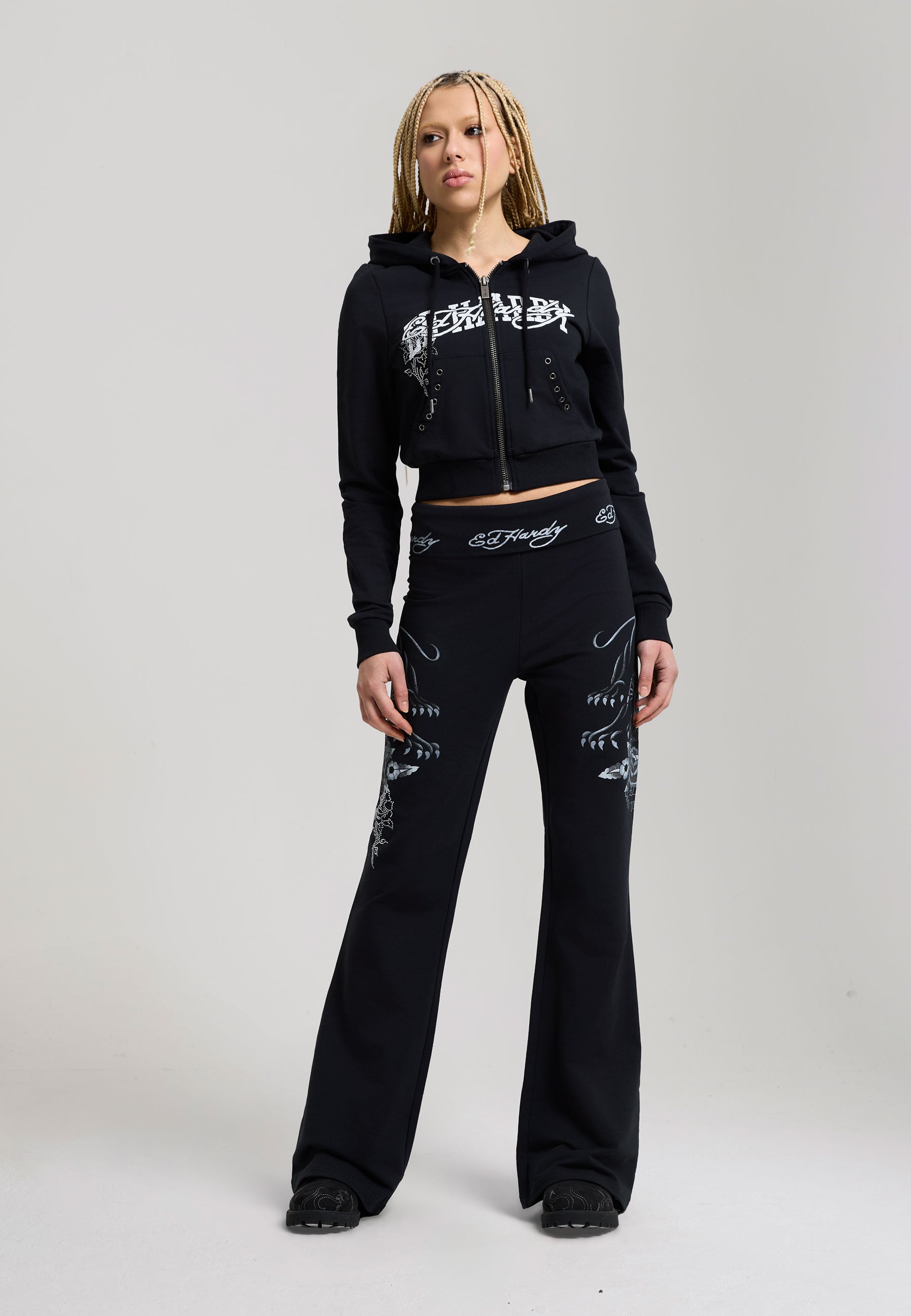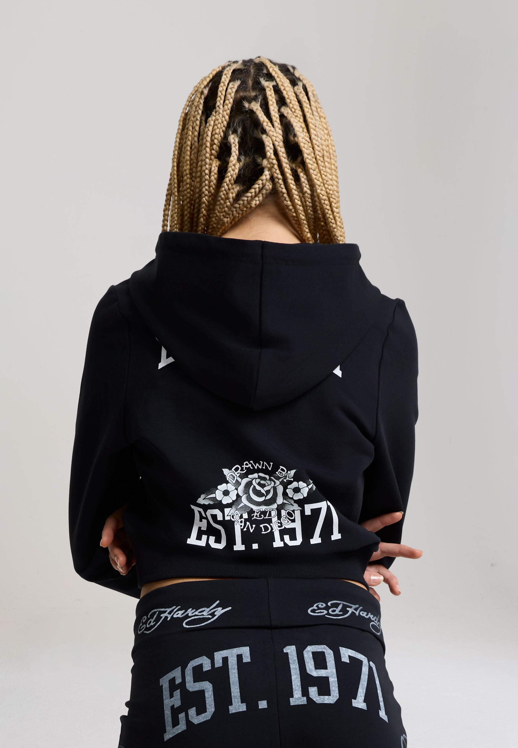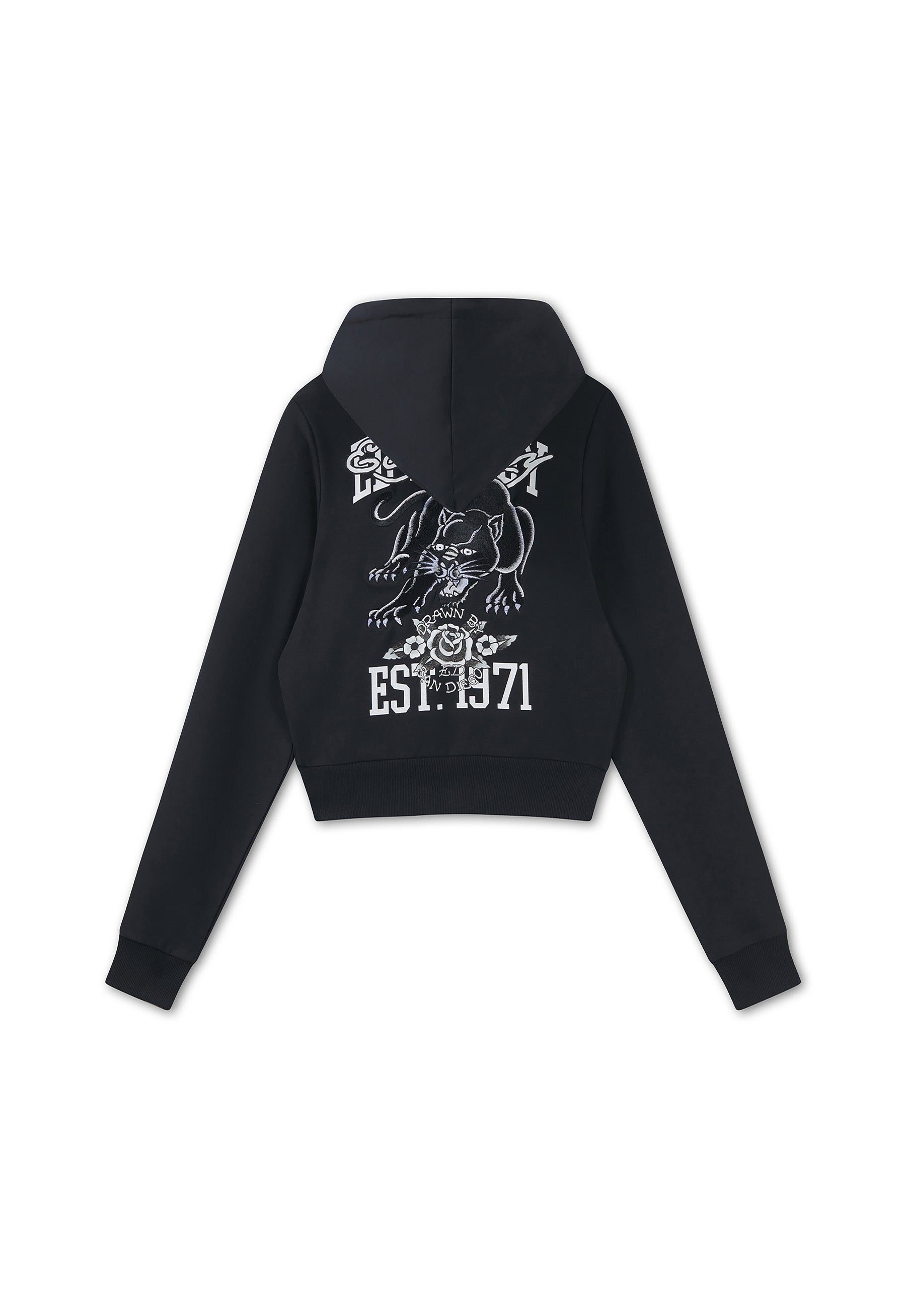 Womens Panther 1971 Cropped Fitted Hoodie - Black