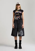 Womens Varsity Dragon Cap Sleeve Tee in Black